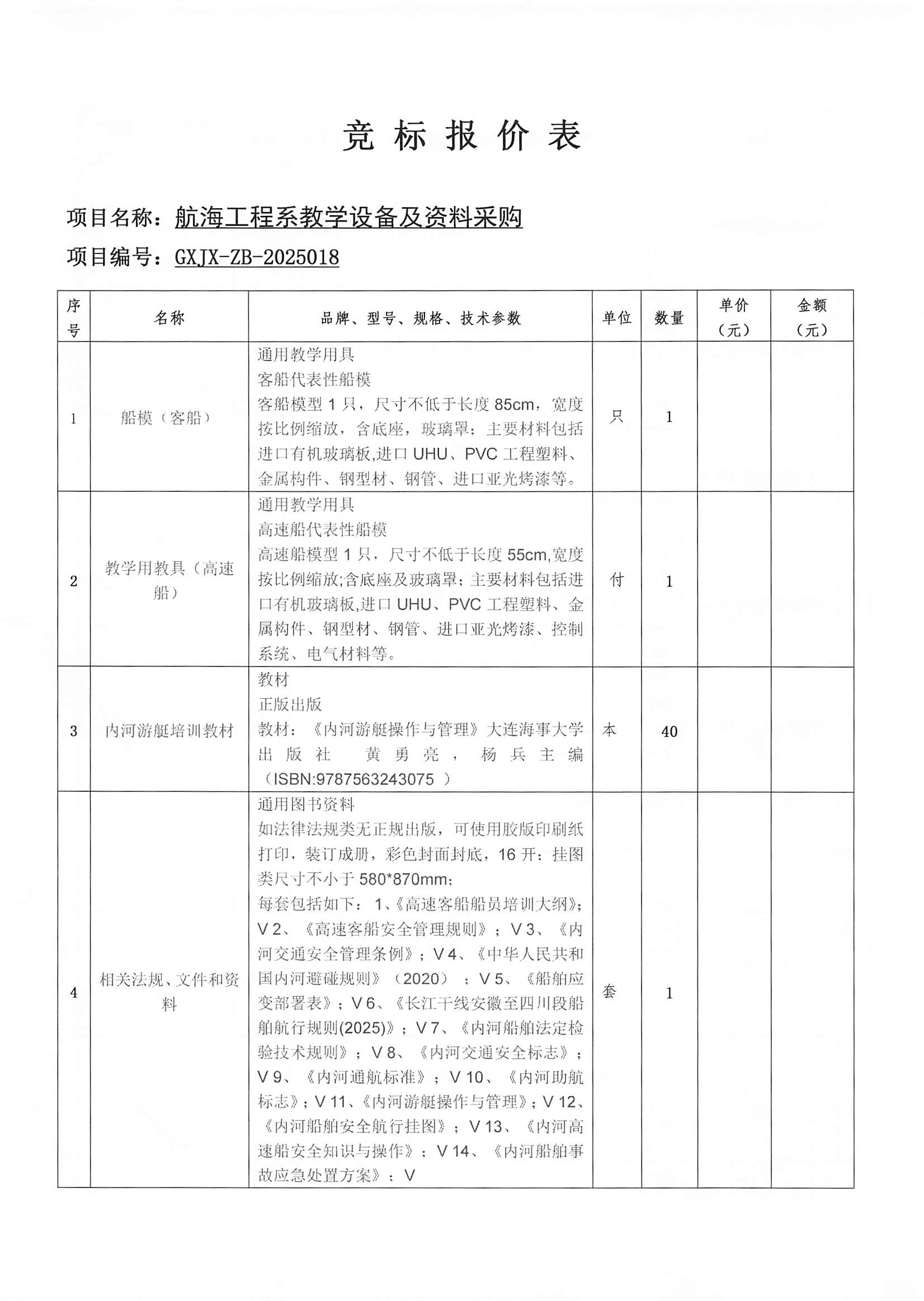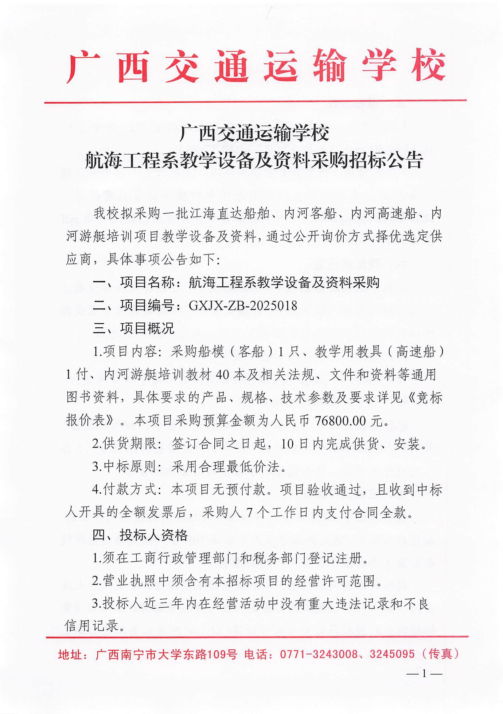 广西交通运输学校航海工程系教学设备及资料采购招标公告