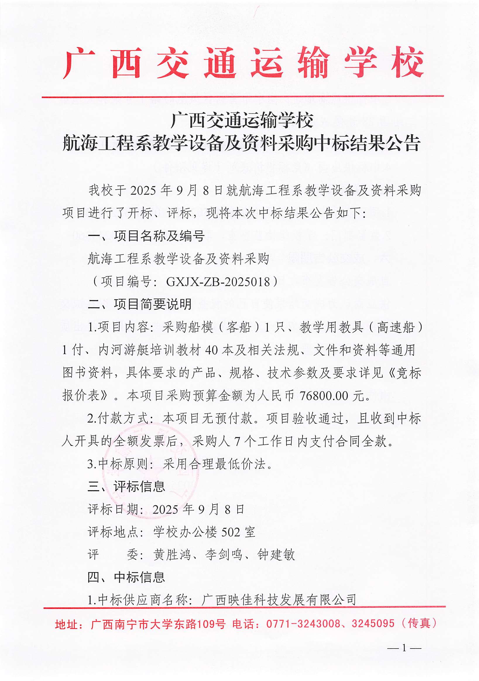 广西交通运输学校航海工程系教学设备及资料采购中标结果公告.pdf