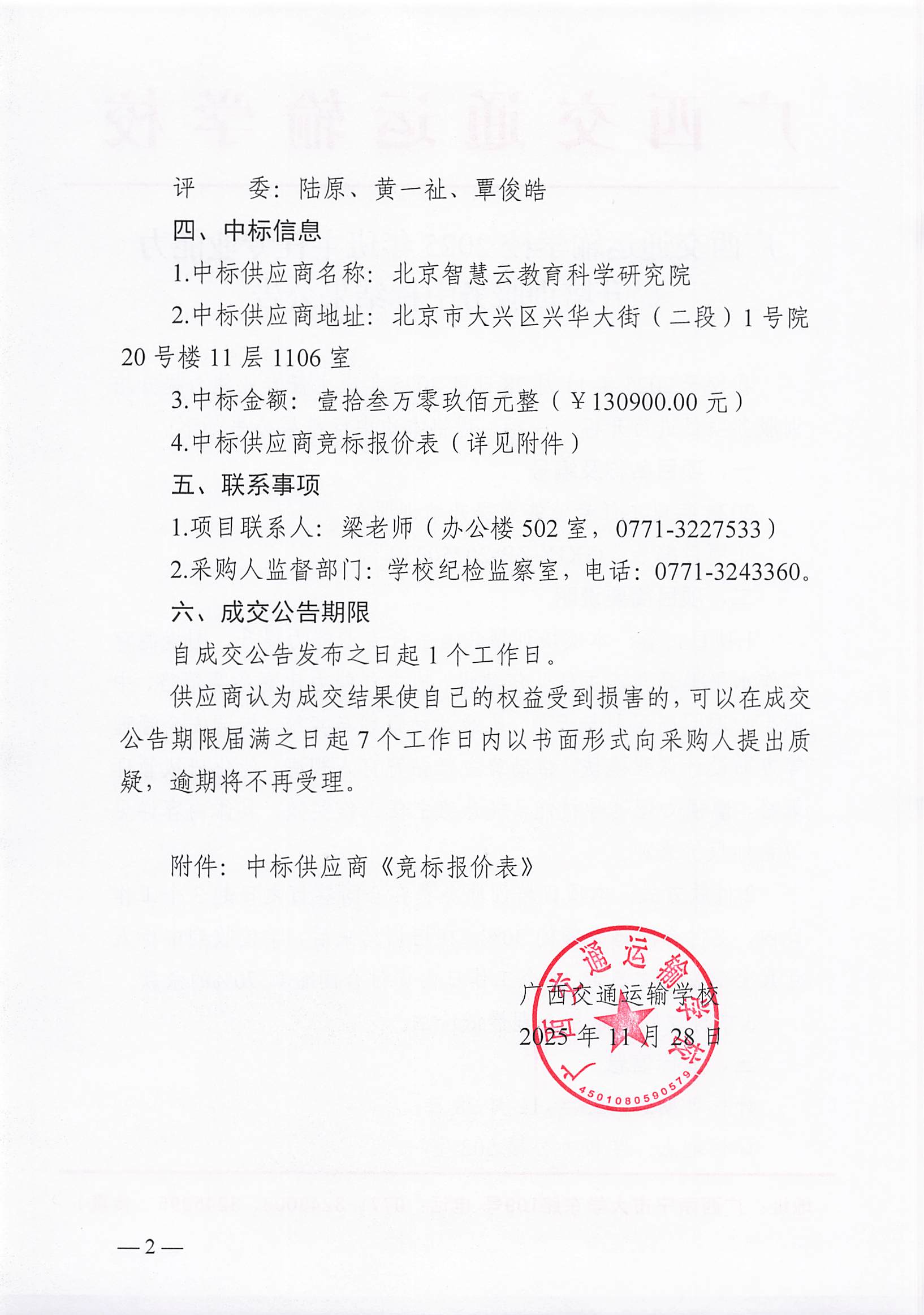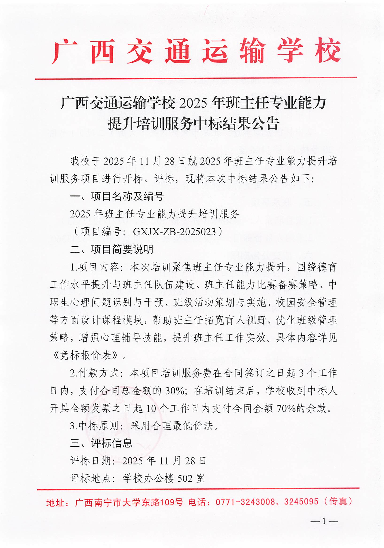 广西交通运输学校2025年班主任专业能力提升培训服务中标结果公告