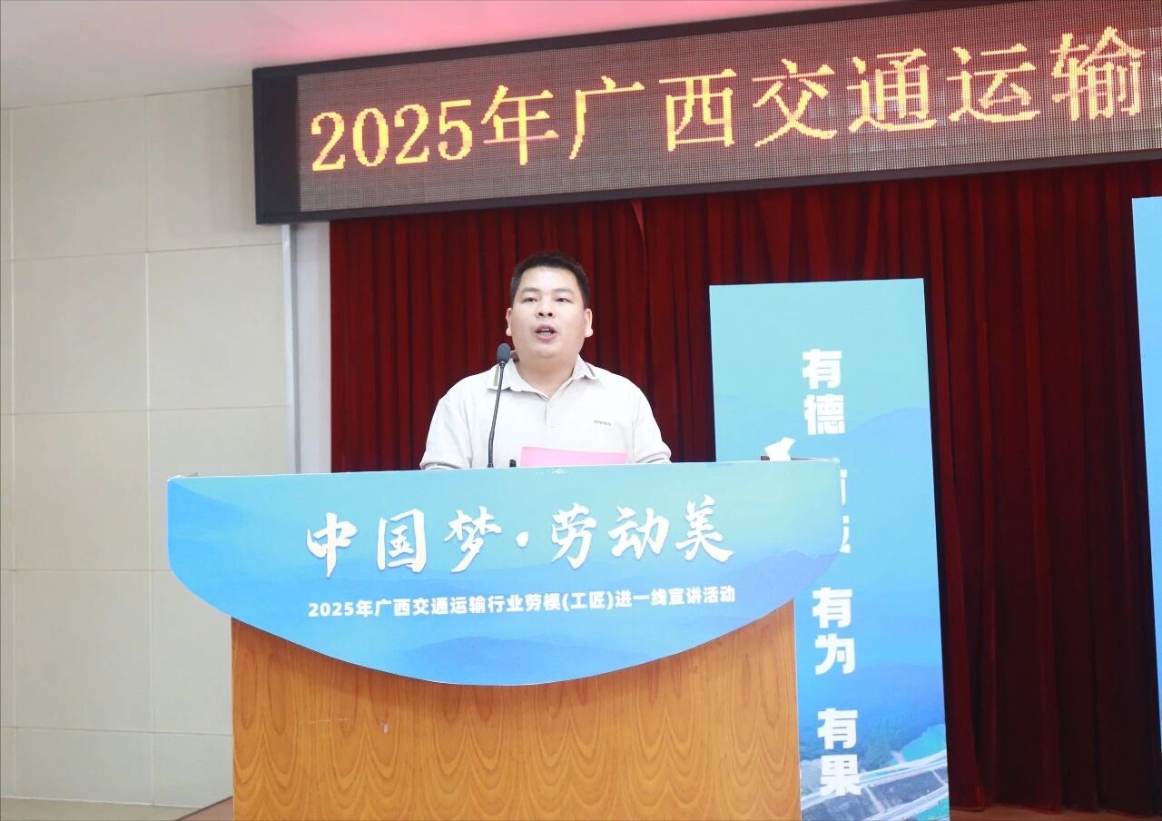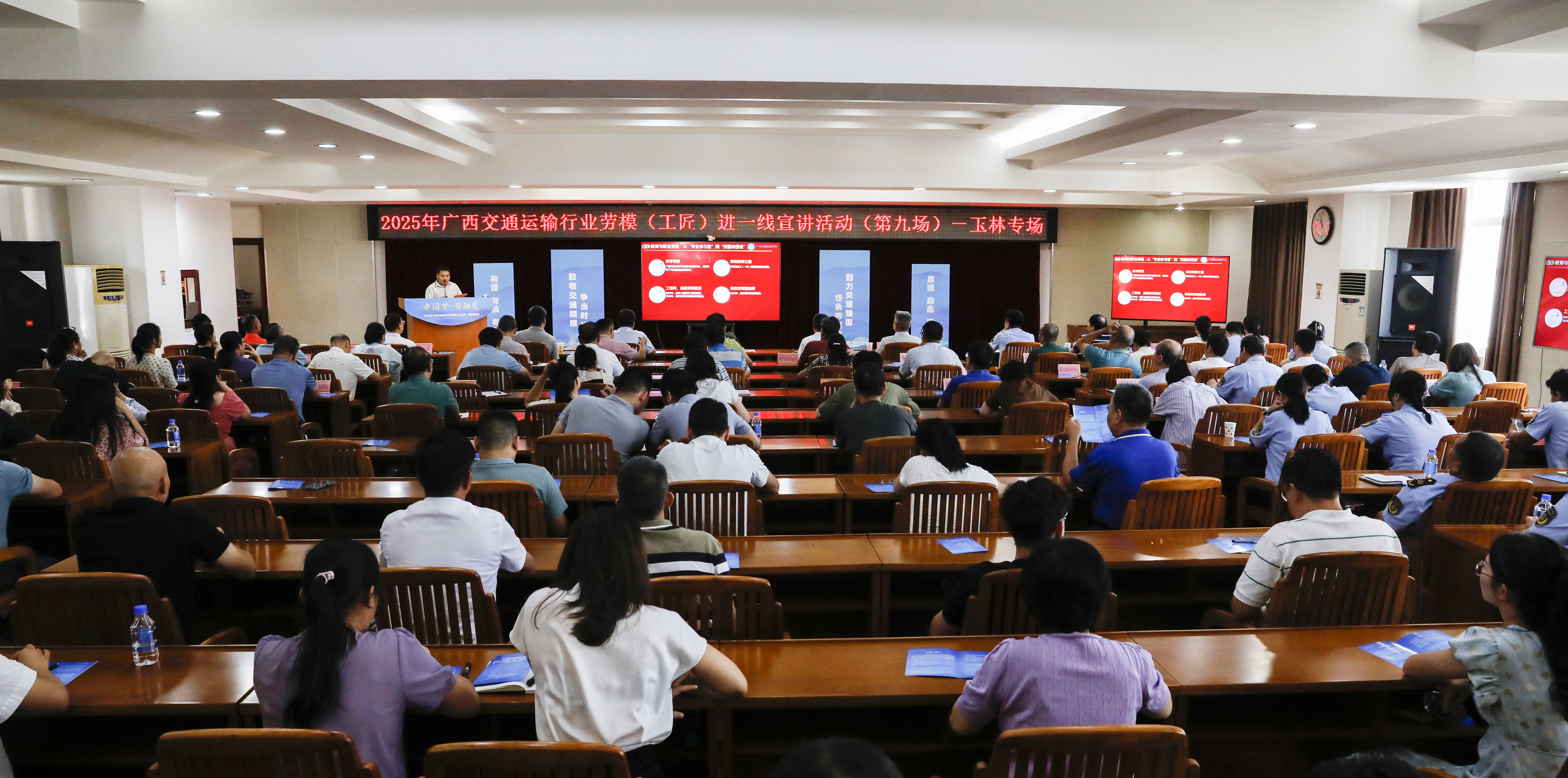 9月18日,“中国梦·劳动美”2025年广西交通运输行业劳模(工匠)进一线宣讲活动(第九场)在玉林市交通运输局举行。活动由广西交通工会、海员工会主办,旨在弘扬劳模精神、劳动精神、工匠精神。广西交通工会、海员工会主席廖红梅等出席并致辞。