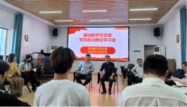 2025年10月28日下午,基础教学党支部在学校信息楼音乐教室组织召开全体党员会议,顺利开展以“党建引领党员教师结对帮扶辅导运动训练专业学生升学研讨”为主题的党日活动。会议由支部书记何顺勇主持,支部全体党员及四名运动训练专业2023级学生代表共同参与。