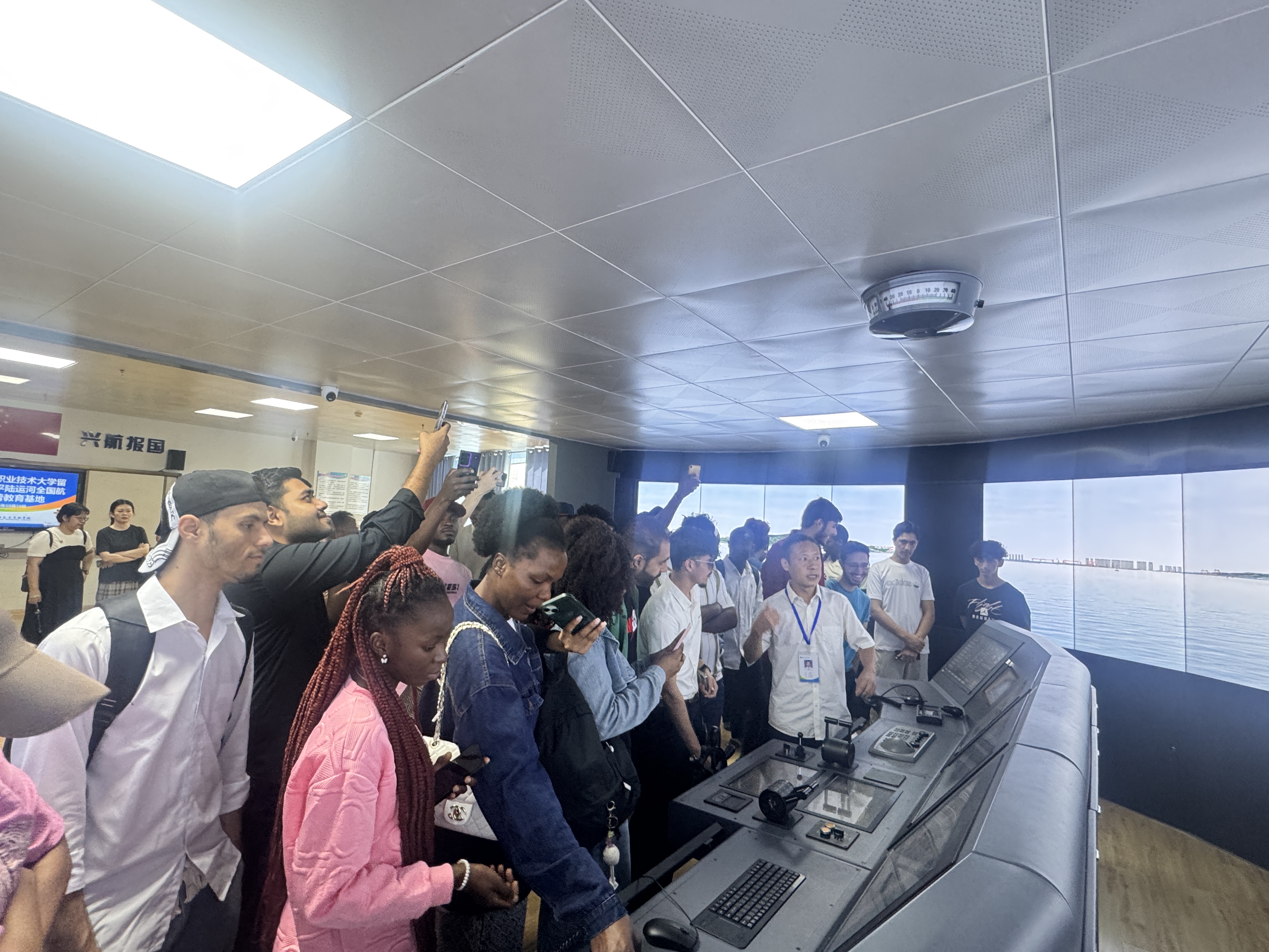 随后的模拟船舶驾驶体验将活动推向高潮。留学生们踊跃参与,在仿真环境中亲手操作驾驶设备,体验船舶航行的基本流程,将课堂所学的理论知识与实际操作相结合,深化了对航海职业的认知。