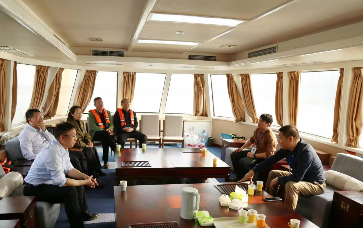 揭牌仪式后,双方在育桂3号实习船上参观并进行座谈。双方围绕联合办学、专业共建、社会培训等展开深入交流。常务副校长黄兆牛介绍了学校的基本情况与发展规划,表达了希望通过合作提升办学水平、拓宽学生发展路径的意愿。随后双方聚焦联合办学模式创新、重点专业共建、社会培训资源整合等核心合作事宜展开深入研讨,并结合各自优势提出多项具体合作思路,为后续精准对接、落地合作项目凝聚了共识。