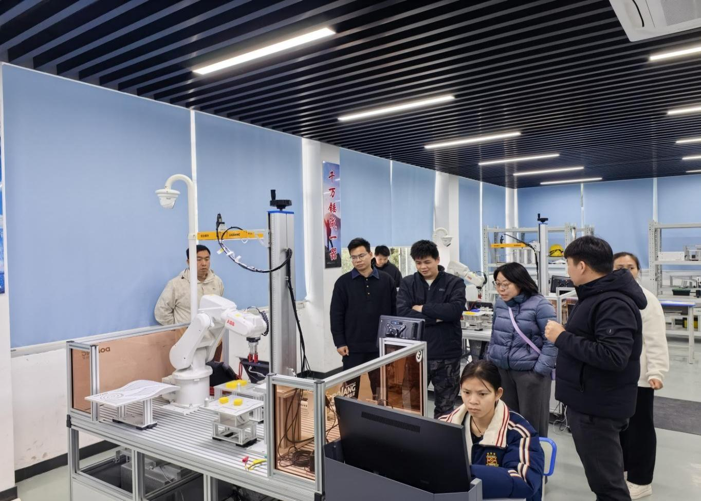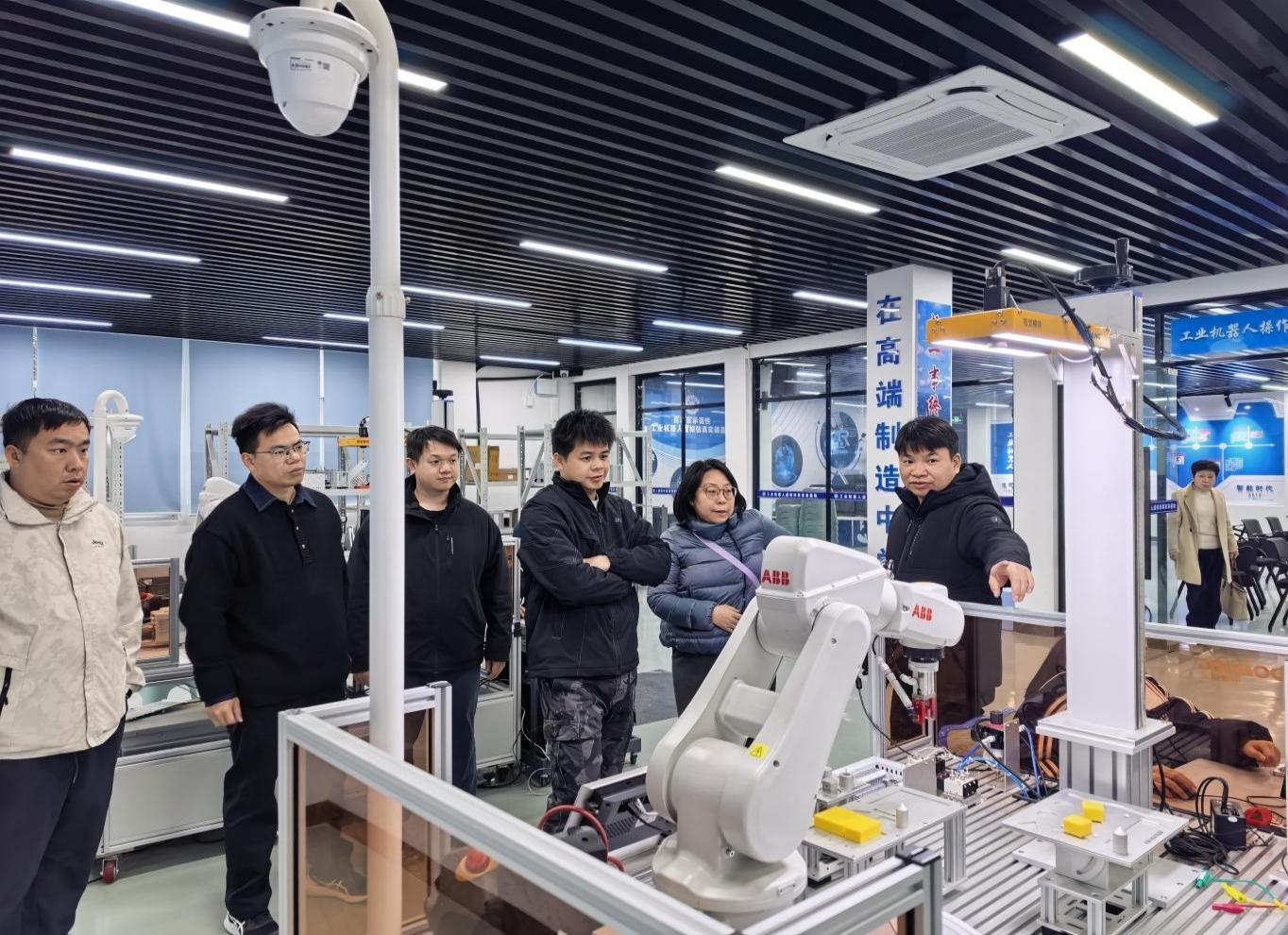 交流团首先实地参观了我校智能电气实训中心、工业机器人实训基地等场所,对我校“理实一体化”教学模式的运行情况及校企合作的丰硕成果进行了深入了解。