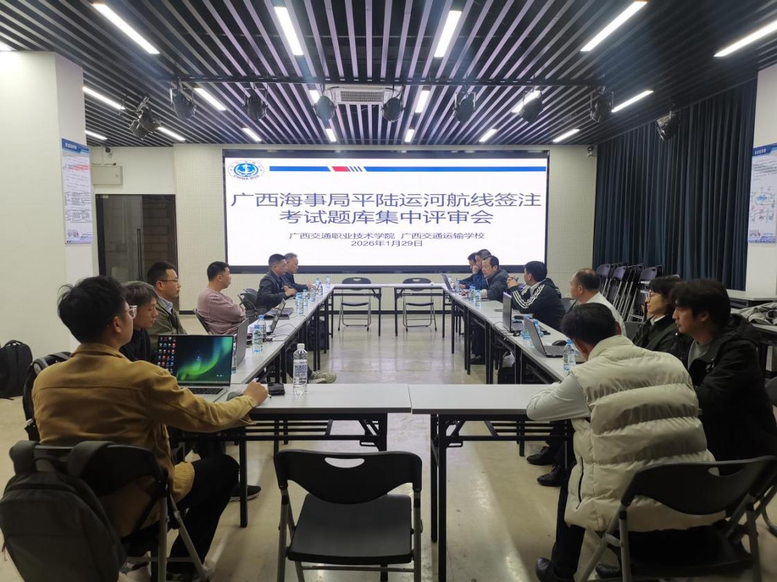 2026年1月29日至30日,由广西海事局组织,相关辖区分支局、北部湾大学、广西交通职业技术学院、辖区船员培训机构的多位航运学者与一线教学专家齐聚我校,共同参与平陆运河航线签注考试题库评审会。我校常务副校长黄兆牛及船员培训中心、航海专业教师代表共同参与交流评审。